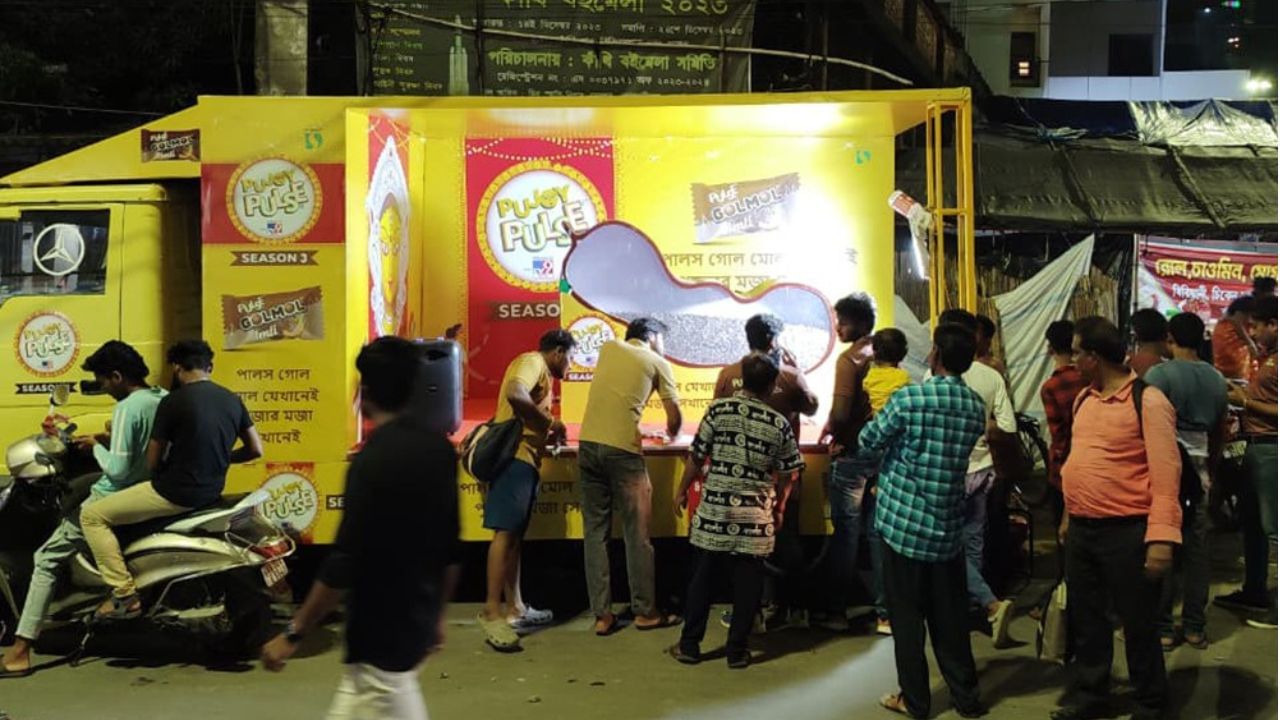 এবারের মূল আকর্ষণ পালসের নতুন ক্যান্ডি ‘গোলমোল’। তেঁতুলের স্বাদের এই নতুন ক্যান্ডি চেখে দেখতে উৎসাহিত আট থেকে আশি সকলেই। অনেকেই জানাচ্ছেন, এমন স্বাদ তাঁরা আগে কখনও পাননি। কুইজ, গেম ও কুপনের মাধ্যমে এই প্রচারমূলক অনুষ্ঠানে অংশ নিচ্ছেন সাধারণ মানুষ। ‘একদম গাছ থেকে পেড়ে যেমন খাই, তেমনই খেতে’, বলছেন এক ব্যক্তি।